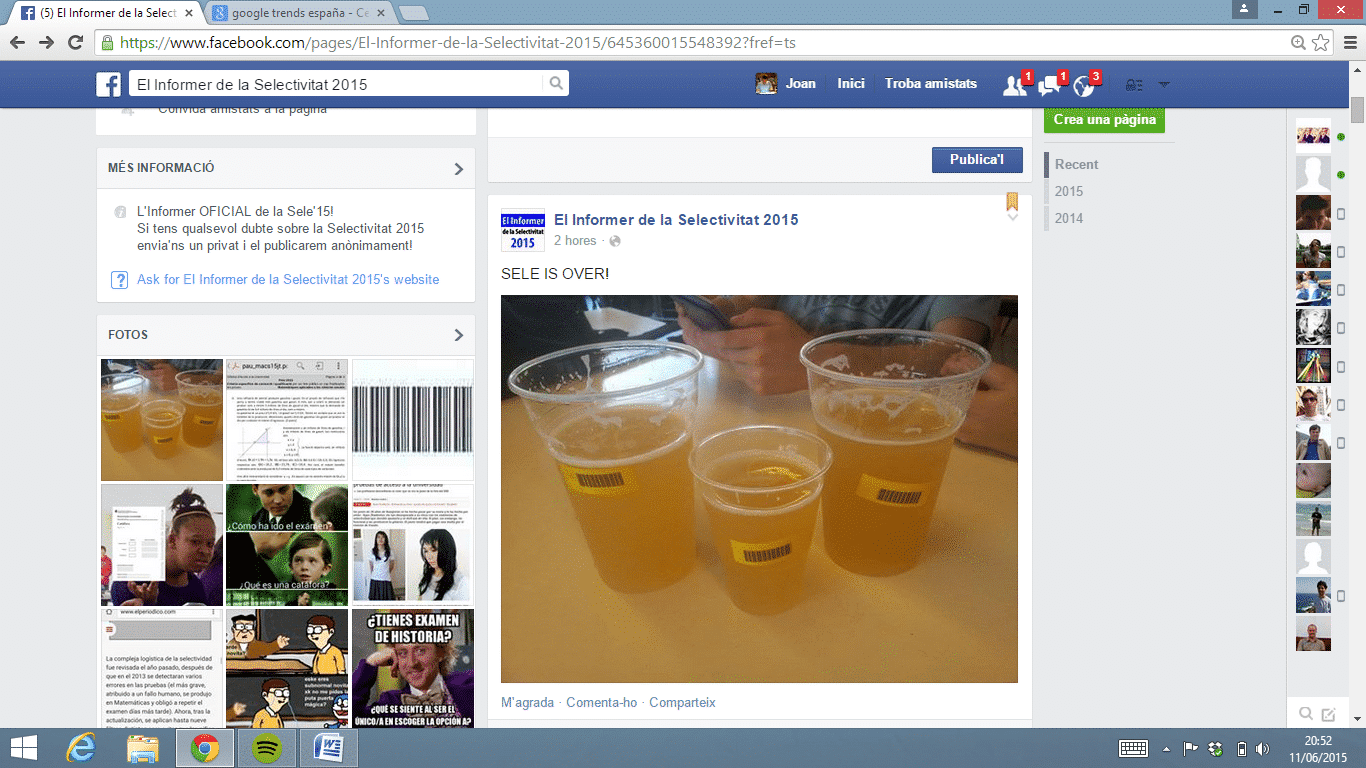 En segon lloc, si ara anem al cantó dels alumnes, a part de l’”empollada” i els nervis, s’han organitzat i han muntat una plataforma, l’Informer oficial de la Selectivitat 2015, on…