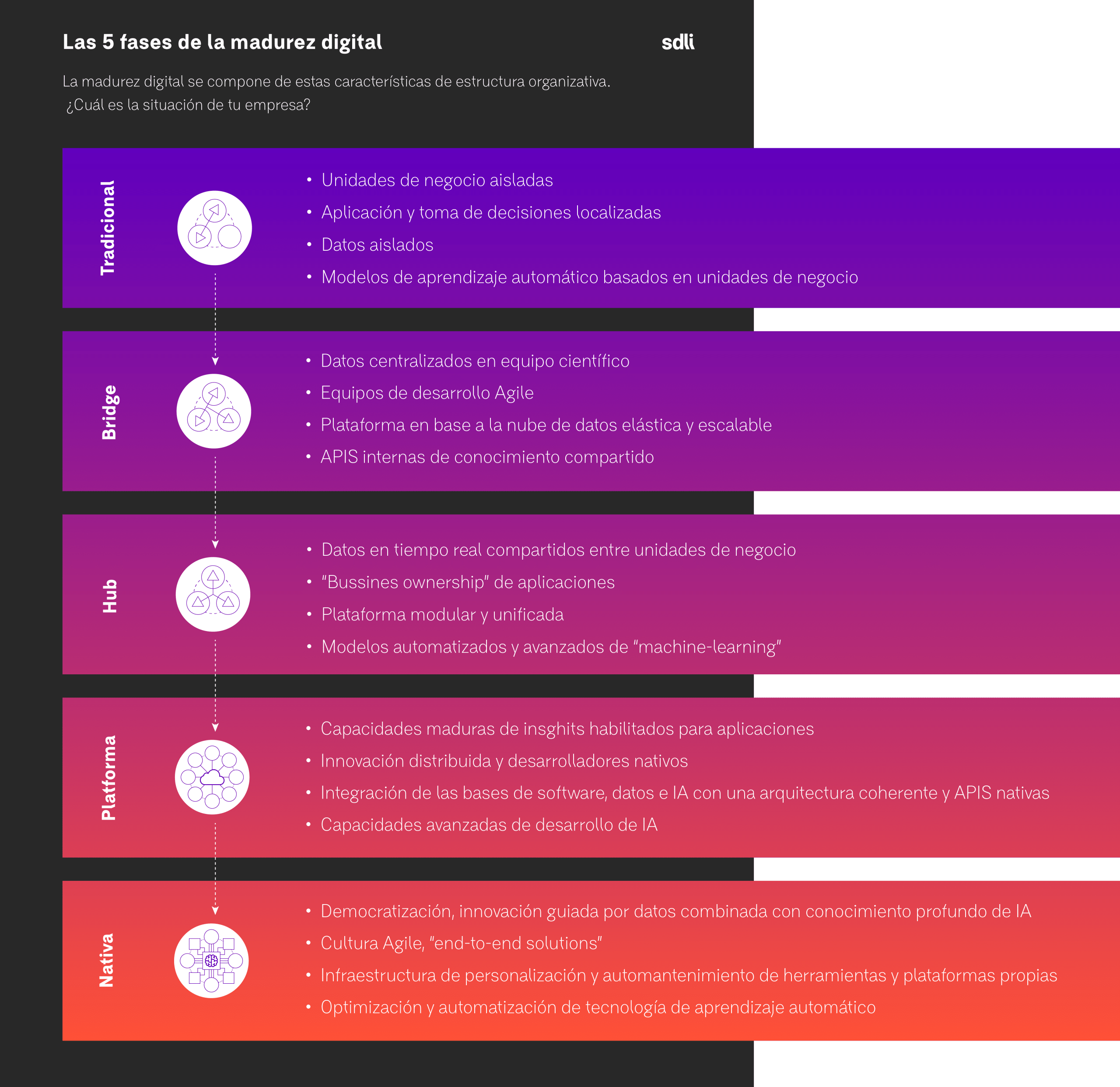 En SDLI entendemos lo complejos que son estos porcesos y que no hay un receta única para nadie. Desde nuestra experiencia podremos ayudarte a conseguir que tus iniciativas orientadas a la transformación digital tengan el retorno que esperas.