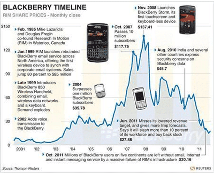Repasemos por último la historia de Blackberry: Mike Lazaridis quedó atrapado en un ciclo de exceso de confianza. Estar orgulloso de su éxito invento era lógico, pero ese orgullo le suposo un grave exceso de confianza. Ese execso de confianza lo desmostró con us apuesta ciega por el teclado por encima de la posibilidad de la pantalla táctil, principal diferencia del iPhone respecto a su propuesta, y que acabó truinfando por encima de BlackBerry.